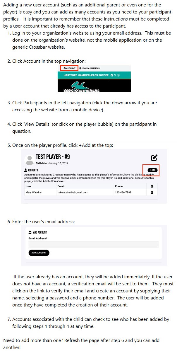 ADDING AN ACCOUNT TO AN EXISTING PARTICIPANT