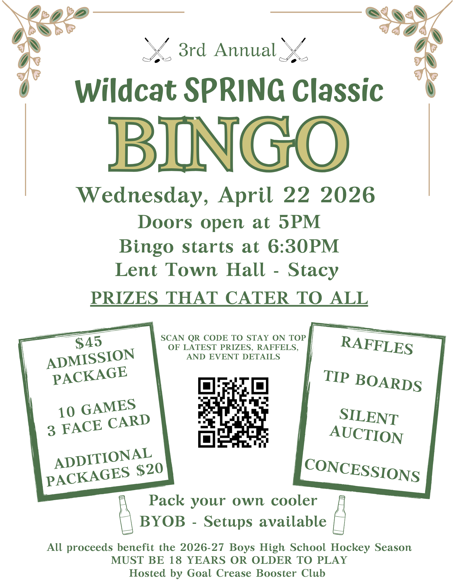 - 100% of proceeds go towards the HS Girls Hockey Program